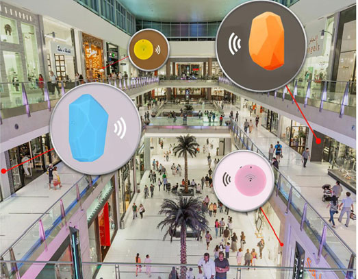 | Rozmístění majáčku je libovolné dle objednávky obchodníka. Dle jeho volby, lze rozmístit majáčky jako nástroj cílené reklamy po celém prostoru obchodního centra, nebo na jednotlivé obchody. | |