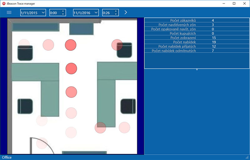 Manažerská konzole aplikace SkyNav™ s vyhodnocením dat